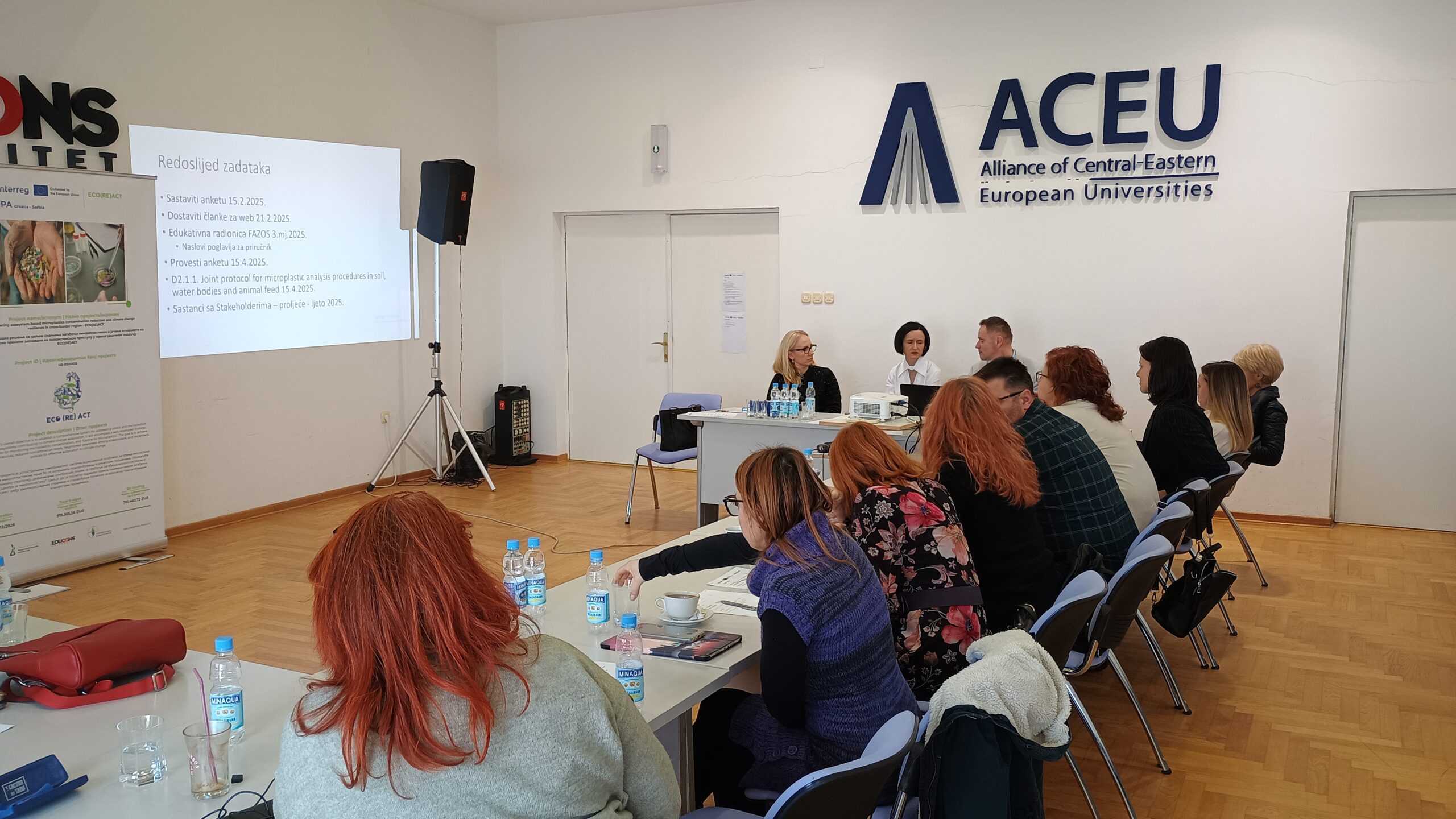 The first knowledge transfer meeting of the ECO(RE)ACT project was held on 5th February 2025 at Educons University, bringing together project partners from FAZOS, EDUCONS, and PZZP to exchange knowledge on sampling methodologies, microplastic analysis techniques, and extraction methods. The meeting opened with a welcome address and an overview of objectives, followed by expert presentations.