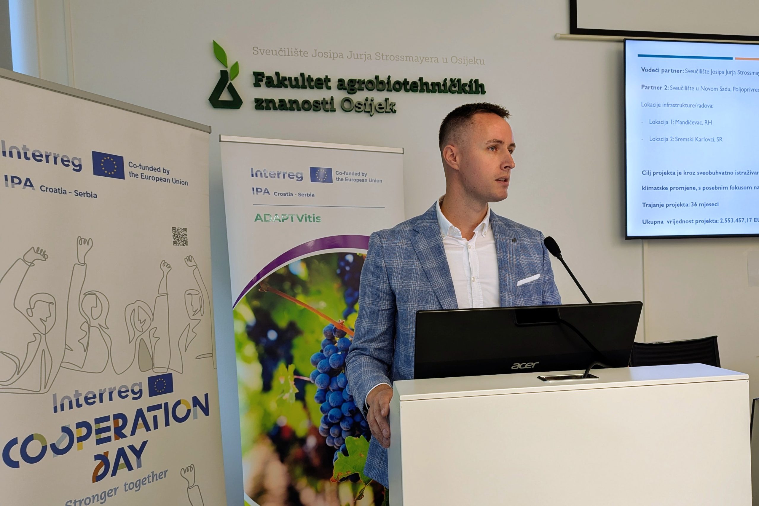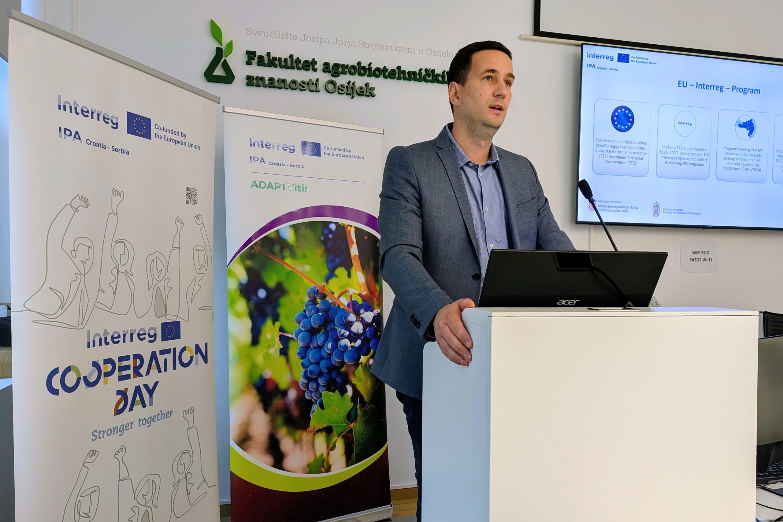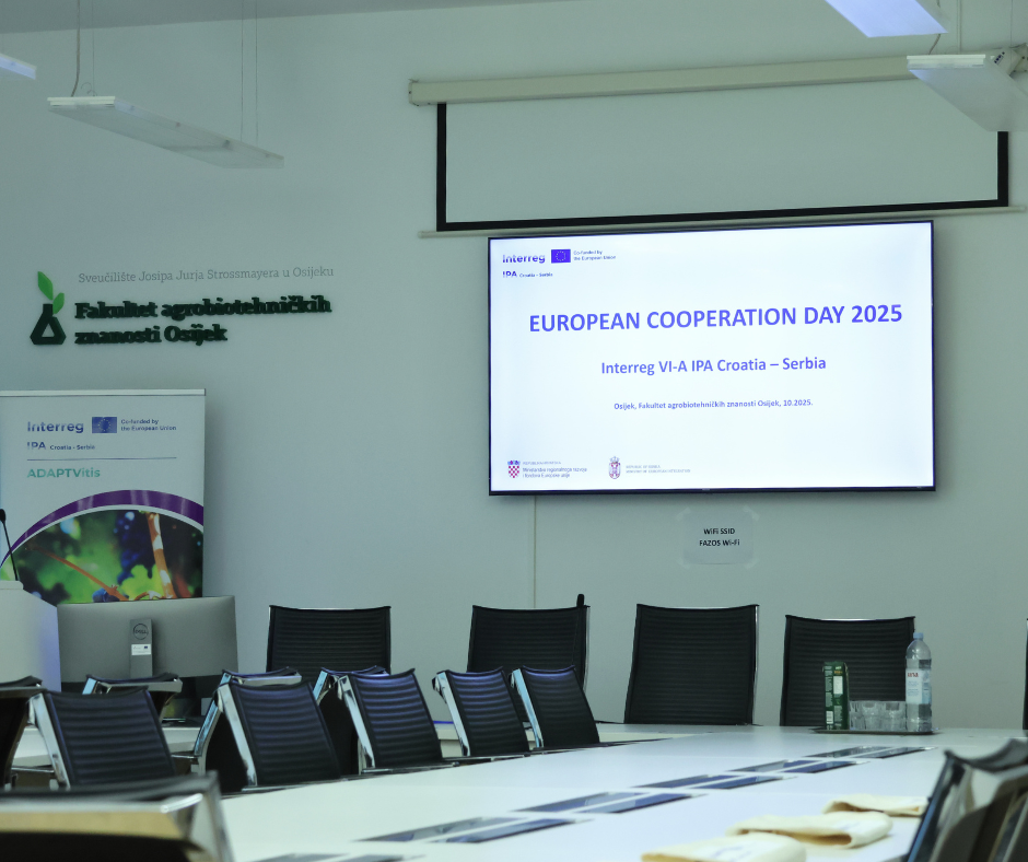 To mark Interreg Cooperation Day, the Faculty of Agrobiotechnical Sciences in Osijek, in cooperation with the Ministry of Regional Development and EU Funds, hosted a student-focused event highlighting the Interreg and Interreg IPA Croatia–Serbia programmes, as well as the strategic project ADAPTvitis.